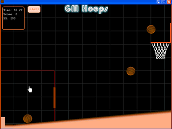 This is a basketball shooting game like one you might see at an arcade. You have 3 balls and a timer. You go for a high score and that’s about it. It takes some practice to get the throwing down. You have to hold the mouse down on the ball and then let go to throw. If you get around 7 or 8 your a pro ;)